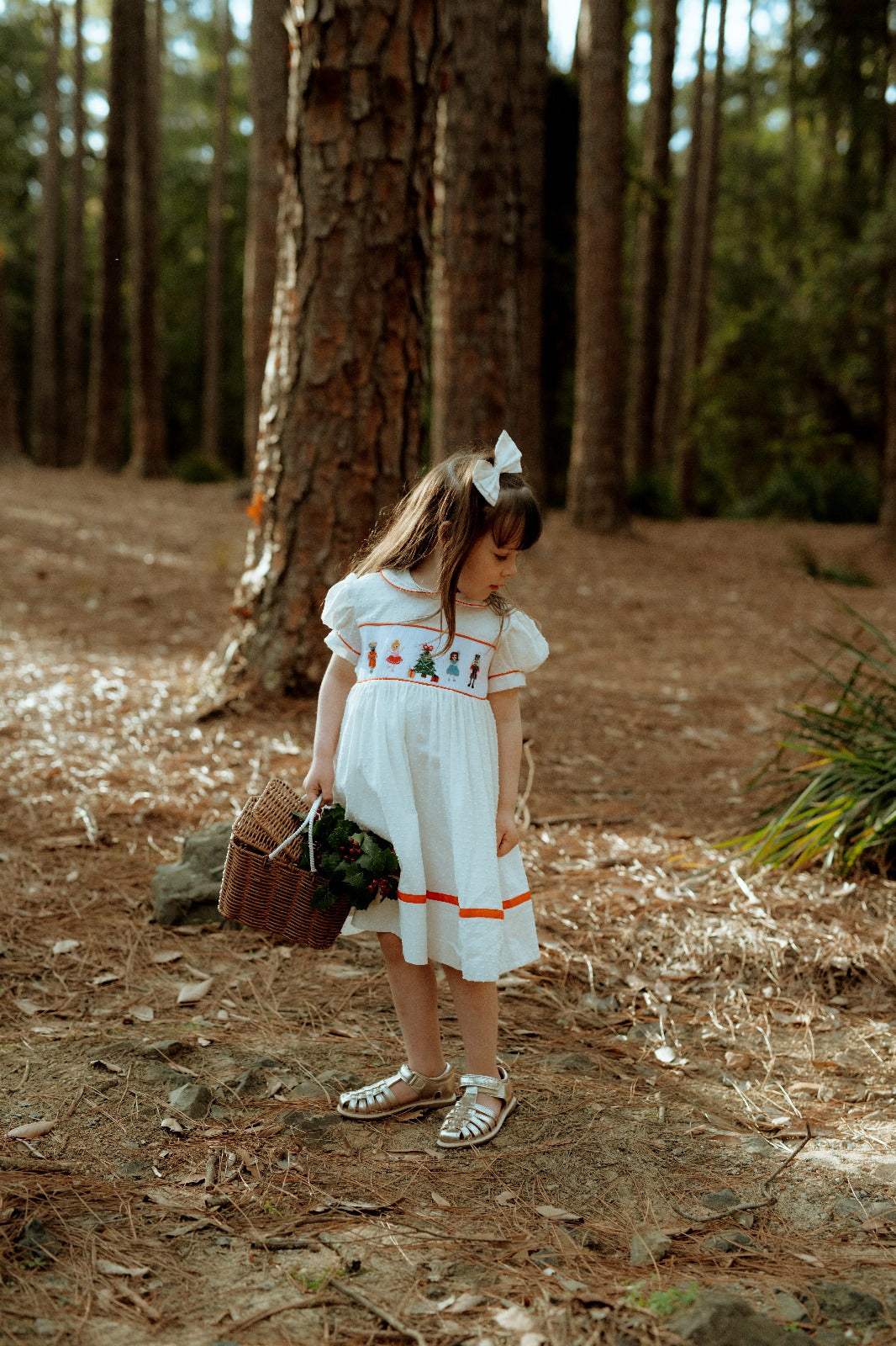 Step into a world of Christmas magic with our Sugar Plum Christmas Dress! Designed in Australia, this vintage inspired holiday favourite features beautiful hand smocking with Nutcracker themed embroidery, from twirling ballerinas to a sparkling Christmas tree.